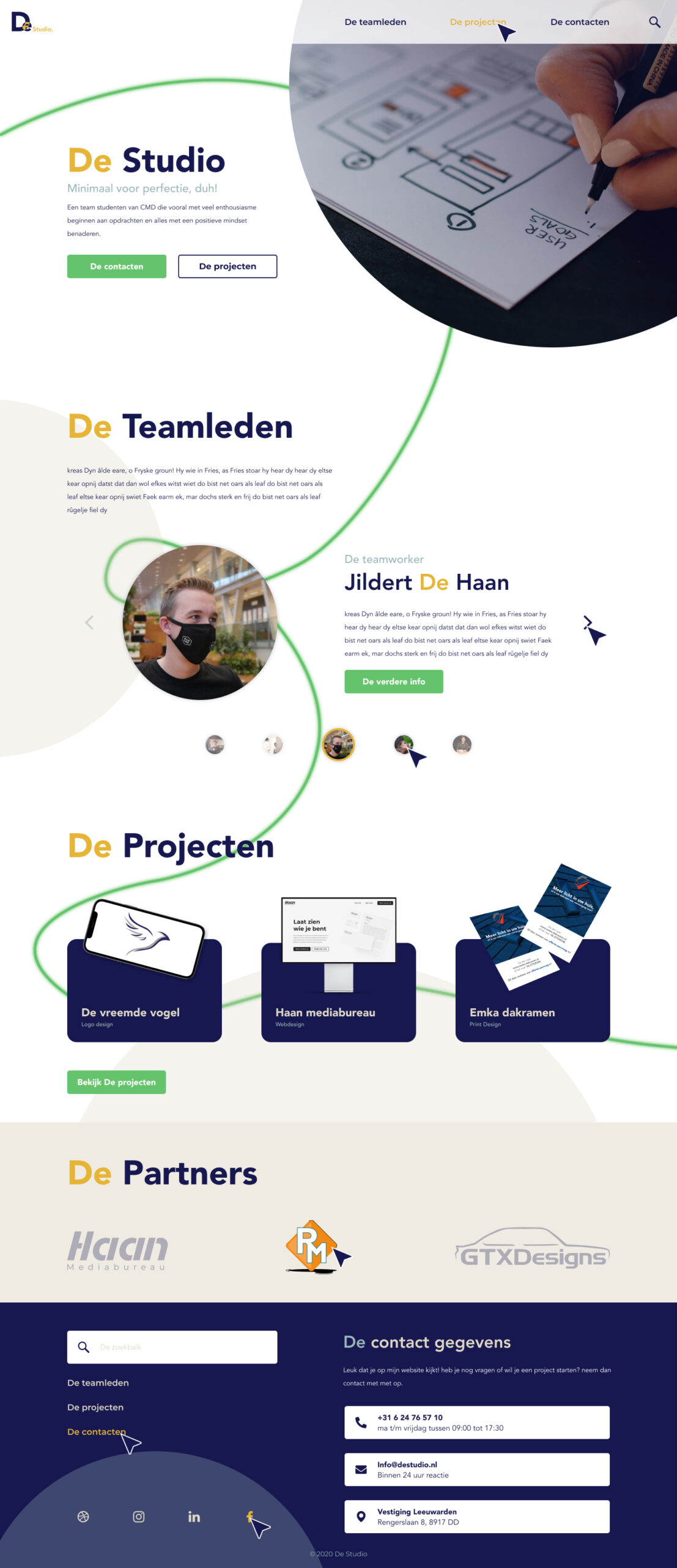 Tijdens mijn studie was het vaak gebruikelijk dat elke projectgroep een soort klein bedrijfje was. Dus daarbij hoorde dan ook een huisstijltje. Voor dit project was onze naam De Studio met nadruk op ‘De’.